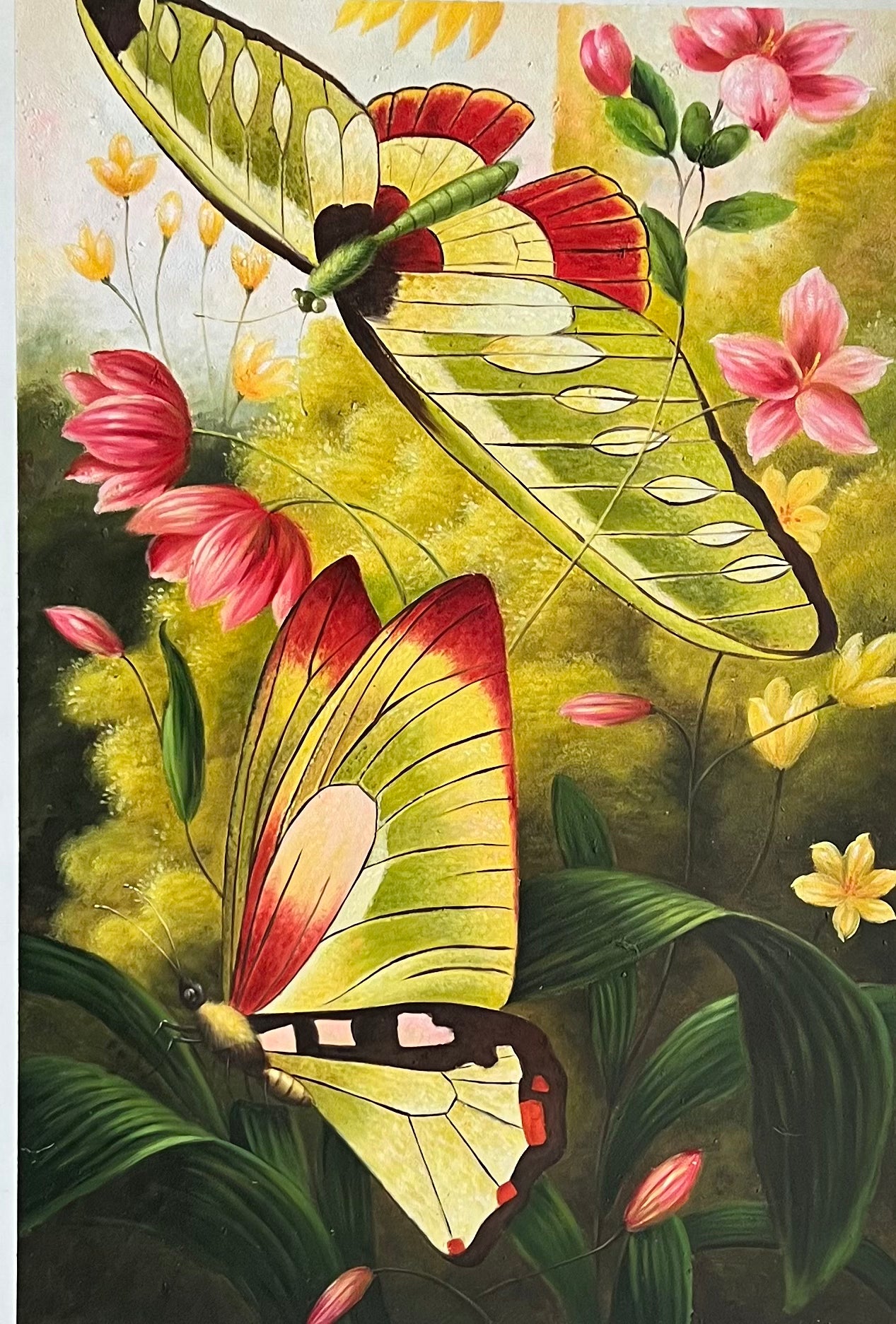 Transform your home with this stunning oil painting of two butterflies among flowers. Let your walls bloom with the beauty of nature, and enjoy the splendor of its delicate details and bold colors. An inspiring and energizing piece for all to admire!
